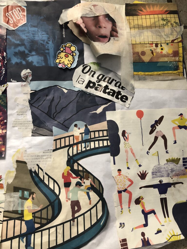 On passe par une étape de réflexion-conscientisation de ses valeurs, puis on se lance dans la pratique du collage en lien avec ce premier temps.