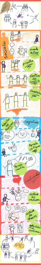 Ce sont les compétences cognitives, émotionnelles et sociales qui nous permettent de faire face aux épreuves de la vie. Ces compétences peuvent se développer de manière transverse au sein des tous les ateliers de la Boitutti.